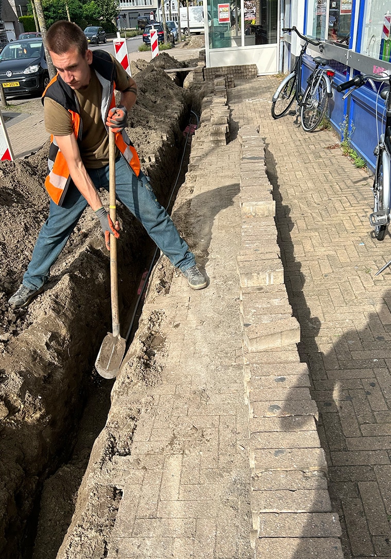 Voor onze opdrachtgevers voeren we diverse werkzaamheden uit, zoals graaf- en grondwerk, het leggen van kabels, sleufbestrating en het zagen van asfalt. Een mooi voorbeeld van hoe we verschillende disciplines combineren voor een vlotte en betrouwbare uitvoering door heel Nederland.